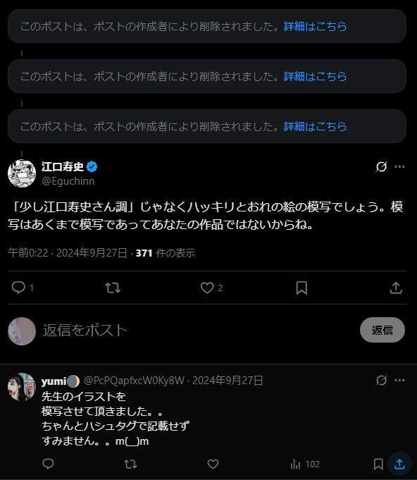 【画像】江口寿史さん「模写はあくまで模写であってあなたの作品ではないからね」