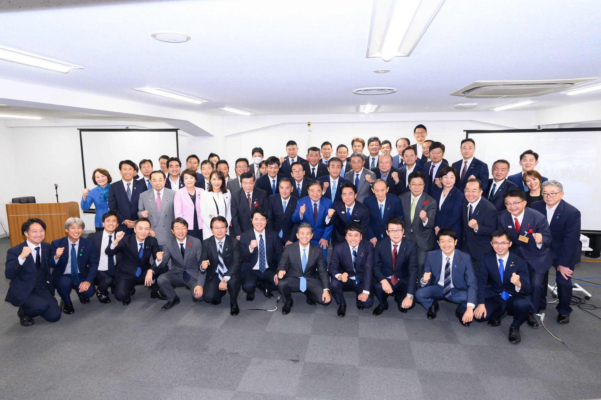 【画像】三原じゅん子、小泉陣営敗戦後の慰労会集合写真でなぜか顔を隠してしまうwwwwwwwwww