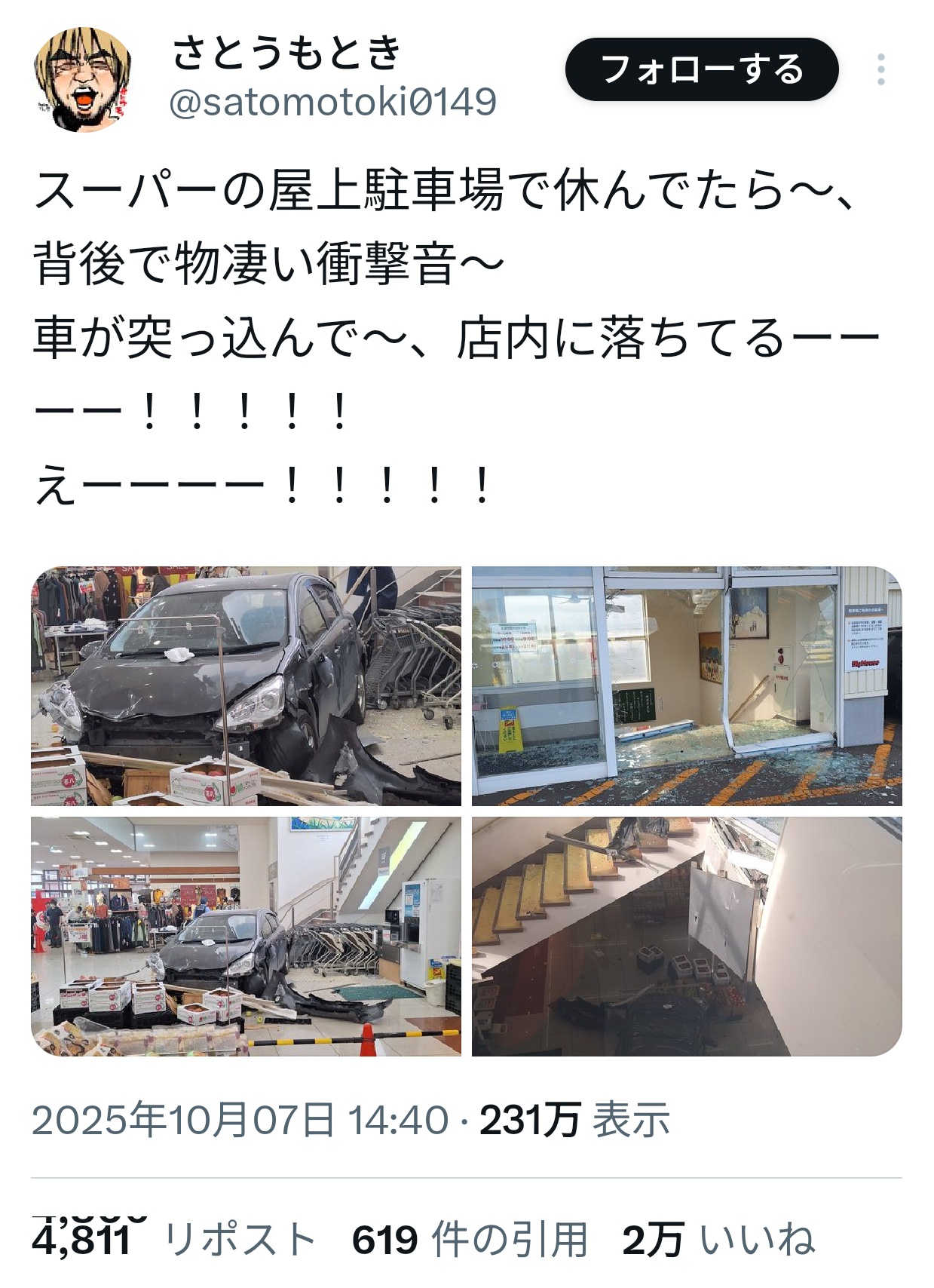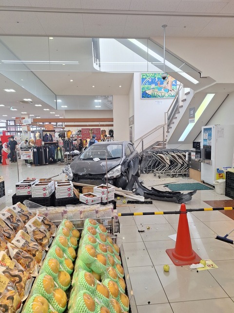 屋上駐車場から店内に落ちてきたらしい