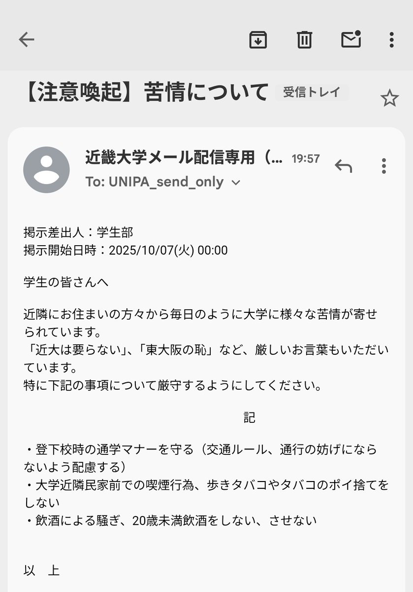 大学がこういうくだけたメールするのはおもろいな