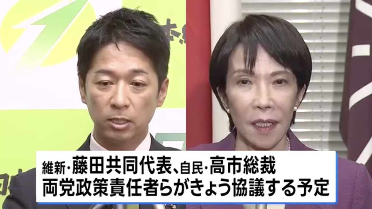 きょう、さっそく藤田共同代表と高市総裁が政策責任者も交えた協議を行う予定です…
