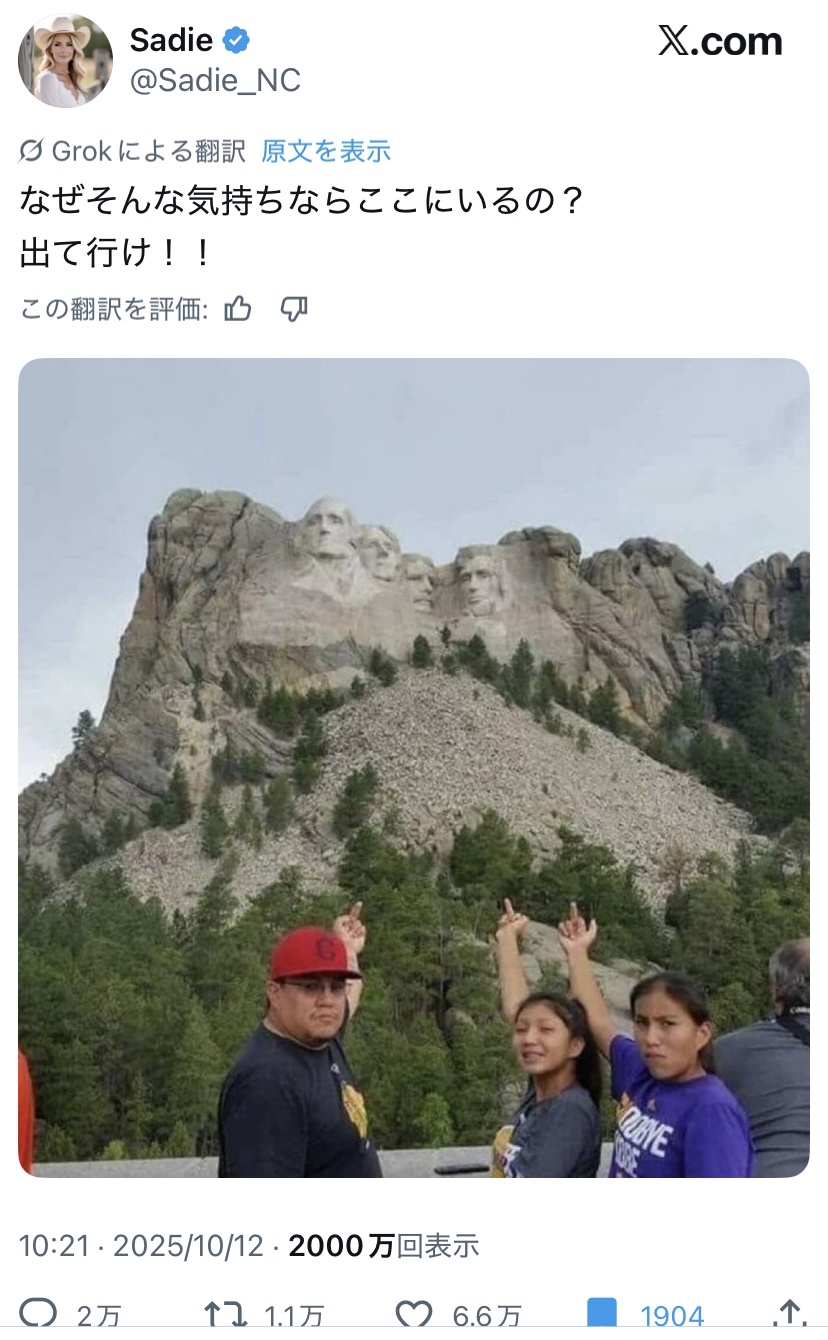 【画像】インディアン、アメリカ大統領像に中指を立てただけで叩かれる