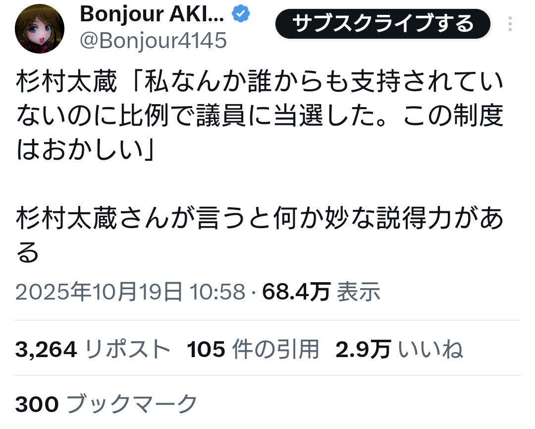 杉村太蔵「私なんか誰からも支持されていないのに比例で議員に当選した。この制度はおかしい」