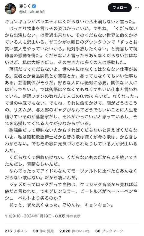 立川志らく、小泉今日子「バラエティ番組はくだらないから出たくない」に異常な長文で反論wwwwwwwwww 2024年1月19日 最終更新日時 : 2024年1月19日 loki.5ch.net カープドラ6西川篤夢!「日本を代表する遊撃手になりたい」【ドラフト会議2025】 カープドラ5赤木晴哉!191cm最速153キロ!佛教大の本格派右腕!【ドラフト会議2025】 カープドラ4工藤泰己!159キロ北の剛腕!【ドラフト会議2025】 カープドラ3勝田成!近畿大163cmセカンド!菊池涼介の後継者候補!【ドラフト会議2025】 カープドラ2齊藤汰直!亜大152キロエース!【ドラフト会議2025】 カープドラ1平川蓮!187cmのスイッチヒッター!立石正広を外し2度目の重複も新井監督がクジを引き当てる!【ドラフト会議2025】 【カープ実況】ドラフト会議2025!ドラ1立石正広の獲得なるか 緒方孝市カープドラ3指名で青学出禁!澤﨑俊和の逆指名まで10年間スカウト出禁 【朗報】広島、攻守最強都市だったwww 【悲報】彼女「ごめん!俺くんの貯金、情報商材に使っちゃった」→…問い詰めたらギャン泣きされたんだが俺が悪いのか? 立川志らく、小泉今日子「バラエティ番組はくだらないから出たくない」に異常な長文で反論wwwwwwwwww 1:それでも動く名無し:2024/01/19(金) 10:50:15.83 ID:DxU9zpt+d 6:それでも動く名無し:2024/01/19(金) 10:55:07.41 ID:Bq6PGWiE0 ごめんねってまったく謝ってるつもりないやつ 続きを読む 続きを見る カープドラ6西川篤夢!「日本を代表する遊撃手になりたい」【ドラフト会議2025】 カープドラ5赤木晴哉!191cm最速153キロ!佛教大の本格派右腕!【ドラフト会議2025】 カープドラ4工藤泰己!159キロ北の剛腕!【ドラフト会議2025】 カープドラ3勝田成!近畿大163cmセカンド!菊池涼介の後継者候補!【ドラフト会議2025】 カープドラ2齊藤汰直!亜大152キロエース!【ドラフト会議2025】 カープドラ1平川蓮!187cmのスイッチヒッター!立石正広を外し2度目の重複も新井監督がクジを引き当てる!【ドラフト会議2025】 【カープ実況】ドラフト会議2025!ドラ1立石正広の獲得なるか 緒方孝市カープドラ3指名で青学出禁!澤﨑俊和の逆指名まで10年間スカウト出禁 関連記事 関連記事はありません。