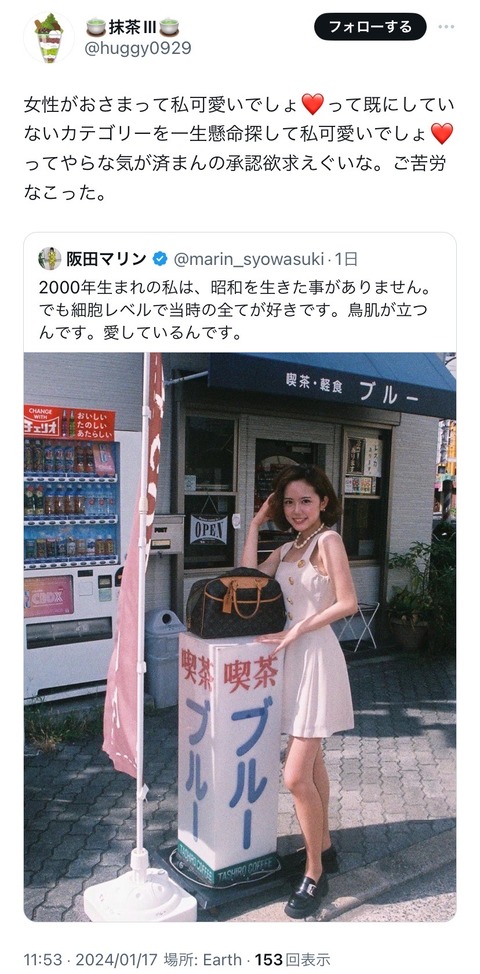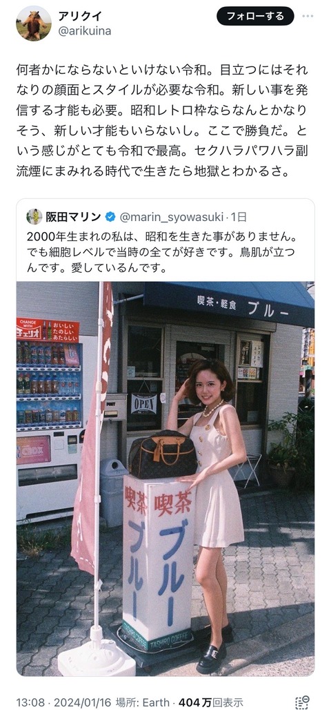 【悲報】女性インフルエンサーさん、昭和風の写真をあげたところ昭和を知る弱者女性から叩かれてしまう (※画像あり) 2024年1月19日 最終更新日時 : 2024年1月19日 loki.5ch.net カープドラ6西川篤夢!「日本を代表する遊撃手になりたい」【ドラフト会議2025】 カープドラ5赤木晴哉!191cm最速153キロ!佛教大の本格派右腕!【ドラフト会議2025】 カープドラ4工藤泰己!159キロ北の剛腕!【ドラフト会議2025】 カープドラ3勝田成!近畿大163cmセカンド!菊池涼介の後継者候補!【ドラフト会議2025】 カープドラ2齊藤汰直!亜大152キロエース!【ドラフト会議2025】 カープドラ1平川蓮!187cmのスイッチヒッター!立石正広を外し2度目の重複も新井監督がクジを引き当てる!【ドラフト会議2025】 【カープ実況】ドラフト会議2025!ドラ1立石正広の獲得なるか 緒方孝市カープドラ3指名で青学出禁!澤﨑俊和の逆指名まで10年間スカウト出禁 【朗報】広島、攻守最強都市だったwww 【悲報】彼女「ごめん!俺くんの貯金、情報商材に使っちゃった」→…問い詰めたらギャン泣きされたんだが俺が悪いのか? 【悲報】女性インフルエンサーさん、昭和風の写真をあげたところ昭和を知る弱者女性から叩かれてしまう (※画像あり) 1:それでも動く名無し:2024/01/19(金) 16:48:07.08 ID:hFF2UWyI0 続きを読む 続きを見る カープドラ6西川篤夢!「日本を代表する遊撃手になりたい」【ドラフト会議2025】 カープドラ5赤木晴哉!191cm最速153キロ!佛教大の本格派右腕!【ドラフト会議2025】 カープドラ4工藤泰己!159キロ北の剛腕!【ドラフト会議2025】 カープドラ3勝田成!近畿大163cmセカンド!菊池涼介の後継者候補!【ドラフト会議2025】 カープドラ2齊藤汰直!亜大152キロエース!【ドラフト会議2025】 カープドラ1平川蓮!187cmのスイッチヒッター!立石正広を外し2度目の重複も新井監督がクジを引き当てる!【ドラフト会議2025】 【カープ実況】ドラフト会議2025!ドラ1立石正広の獲得なるか 緒方孝市カープドラ3指名で青学出禁!澤﨑俊和の逆指名まで10年間スカウト出禁 関連記事 関連記事はありません。