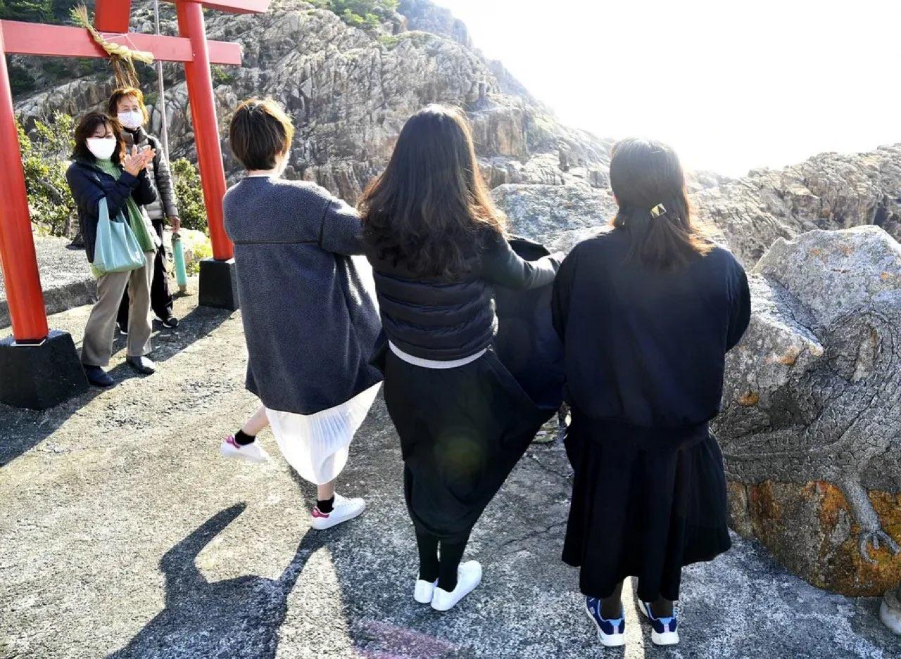 スカートめくり上げ大漁祈願!? 女性だけのお宮参り「漁招き」 高知県土佐清水市土佐清水市松尾の竜宮神社で10日、大漁祈願の「漁招き」が行われた。女性が着物の裾をめくって大事な所を見せ、神様にお願いするというどきっとする習わし。長年受け継ぐ同市以布利地区の女性たちはスカートの裾をめくり、沖に向かって「大漁ーっ!」と声を張り上げた。