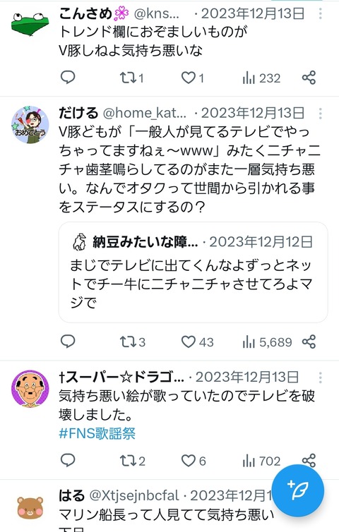 【画像】歌番組にVTuberが出演→「つまらん気持ち悪い」「下品」「テレビを破壊した」 2024年2月25日 最終更新日時 : 2024年2月25日 loki.5ch.net カープドラ6西川篤夢!「日本を代表する遊撃手になりたい」【ドラフト会議2025】 カープドラ5赤木晴哉!191cm最速153キロ!佛教大の本格派右腕!【ドラフト会議2025】 カープドラ4工藤泰己!159キロ北の剛腕!【ドラフト会議2025】 カープドラ3勝田成!近畿大163cmセカンド!菊池涼介の後継者候補!【ドラフト会議2025】 カープドラ2齊藤汰直!亜大152キロエース!【ドラフト会議2025】 カープドラ1平川蓮!187cmのスイッチヒッター!立石正広を外し2度目の重複も新井監督がクジを引き当てる!【ドラフト会議2025】 【カープ実況】ドラフト会議2025!ドラ1立石正広の獲得なるか 緒方孝市カープドラ3指名で青学出禁!澤﨑俊和の逆指名まで10年間スカウト出禁 【朗報】広島、攻守最強都市だったwww 【悲報】彼女「ごめん!俺くんの貯金、情報商材に使っちゃった」→…問い詰めたらギャン泣きされたんだが俺が悪いのか? 【画像】歌番組にVTuberが出演→「つまらん気持ち悪い」「下品」「テレビを破壊した」 1:それでも動く名無し:2024/02/25(日) 16:35:03.13 ID:rWABwtt30 3:それでも動く名無し:2024/02/25(日) 16:35:37.58 ID:377K+1Kz0 過激派やな 続きを読む 続きを見る カープドラ6西川篤夢!「日本を代表する遊撃手になりたい」【ドラフト会議2025】 カープドラ5赤木晴哉!191cm最速153キロ!佛教大の本格派右腕!【ドラフト会議2025】 カープドラ4工藤泰己!159キロ北の剛腕!【ドラフト会議2025】 カープドラ3勝田成!近畿大163cmセカンド!菊池涼介の後継者候補!【ドラフト会議2025】 カープドラ2齊藤汰直!亜大152キロエース!【ドラフト会議2025】 カープドラ1平川蓮!187cmのスイッチヒッター!立石正広を外し2度目の重複も新井監督がクジを引き当てる!【ドラフト会議2025】 【カープ実況】ドラフト会議2025!ドラ1立石正広の獲得なるか 緒方孝市カープドラ3指名で青学出禁!澤﨑俊和の逆指名まで10年間スカウト出禁 関連記事 関連記事はありません。