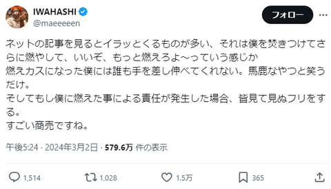 2:それでも動く名無し:2024/03/03(日) 14:44:30.42 ID:cUczGczwp0303