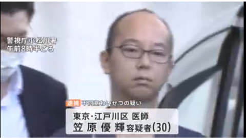 逮捕されたのは、東京・江戸川区の医師・笠原優輝容疑者(30)です。