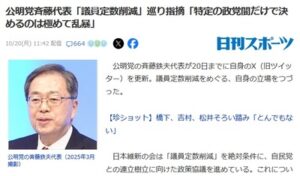 【速報】公明党斉藤代表「議員定数削減を特定の政党間だけで決めるのは極めて乱暴」もう遅い 1: 名無し 2025/10/20(月) 12:08:32.26 ID:1NwaadJM0● BE:662593167-2BP(20 […]