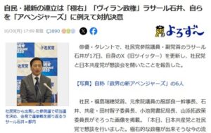 ラサール石井氏「自民・維新の連立は極右。マーベル映画的に言えばまさにヴィラン政権に見える」