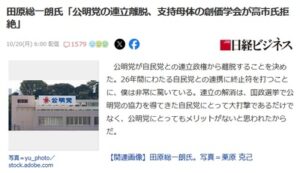 【速報】田原総一朗「高市氏以外の人物が自民党総裁になったら、公明党が連立に戻ってくる可能性はあると思う」 1: 名無し 2025/10/20(月) 14:42:16.83 ID:ZpH2xWlU0 ジャーナリストの田原総 […]