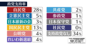 【悲報】政党支持率、立憲民主党5%、国民民主党13%