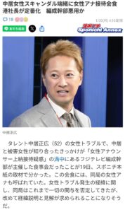 【スポニチ】中居正広さんが被害女性と知り合ったのは「フジテレビ編成幹部が主催した食事会」