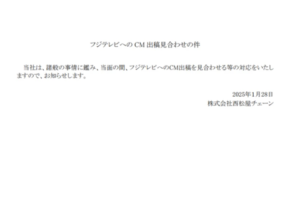 【速報】西松屋が緊急声明を発表。フジテレビ会見から一夜明け