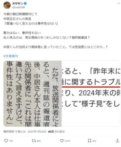 和田アキ子、中居正広氏の引退に2時間生ラジオで言及せず、先週「おまかせ」でもコメントなし 転載元: https://hayabusa9.5ch.net/test/read.cgi/mnewsplus/1737782423 […]