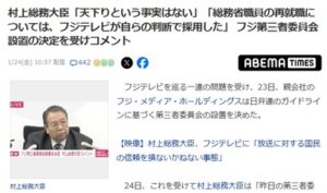 【速報】村上総務大臣「天下りという事実はない!フジテレビが自らの判断で総務省職員を採用した」