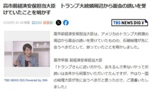 【速報】高市前経済安保担当大臣、トランプ大統領側から面会の誘いを受けていたことが判明「総理が先に会うべきとして丁重にお断り」