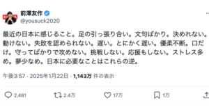 前澤友作「最近の日本に感じること。足の引っ張り合い。文句ばかり…」