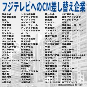 【絶望】フジテレビ、CMスポンサー撤退が104社にwwwwwwwwwwwww