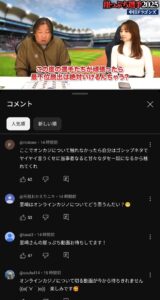 【悲報】里崎チャンネル 動画に関係のないオンラインカジノのコメントで埋め尽くされる