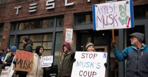 アメリカ人「イーロンマスクはクソ野郎」 全米でテスラ不買運動デモ