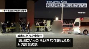 【速報】中国人の中学生2人に包丁で切るなど暴行集団 中国人の少年7人逮捕※日本の話です