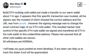 【緊急】Bybit、およそ2100億円分のETHをハッキングされてしまう