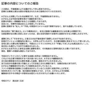 令和ロマンくるま、週刊誌サイトの不倫報道で交際「事実」認めるも「不倫関係はありません」と主張