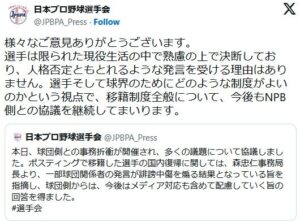 プロ野球選手会 “上沢問題”波紋で再投稿「人格否定ともとれるような発言を受ける理由はありません」