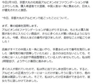 【動画】京都大丸の化粧品アルビオンで「中国人客は一角に集められ、日本人が優先され差別されたと激怒」→免税手続きのためシステム上の問題と判明