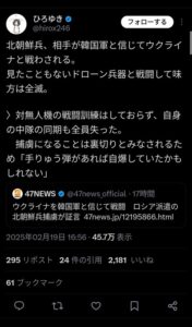【悲報】ウクライナの北朝鮮兵、韓国人と戦ってるつもりだった