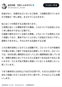 脳外科医 竹田くんのモデル「反省がない他責的などと批判を受けていますので得意の『申し開き』を」