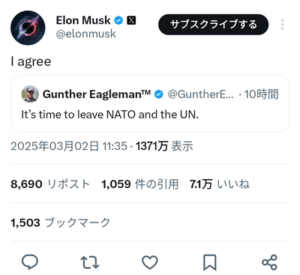 【速報】アメリカ、国連とNATOから脱退へ 1: 名無し 2025/03/02(日) 15:02:46.87 ID:3IF8VaLW0 BE:271912485-2BP(1500) ■新着オススメ一覧【速報】日本政府、在 […]