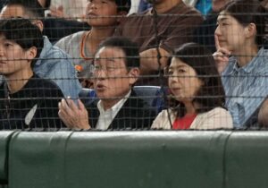 岸田前首相、広島vs巨人『延長12回の死闘』をバックネット裏最前列で観戦www
