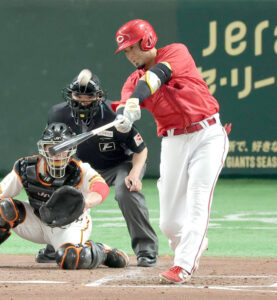 カープ末包、巨人井上から4号同点2ランホームラン!〝超Gキラー〟が真価発揮!!