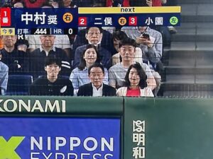 東京ドームバックネット裏に岸田元総理いらっしゃる