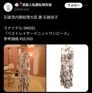 【画像】石破夫人の服、有志により特定され炎上wwwwwwwwww