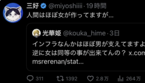 【出産は武器】独身腐女子フェミ「インフラはほぼ男が支えてる?人間はほぼ女が作ってますが…?」→脅威の11万いいね