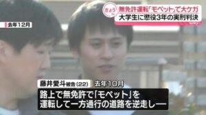 【速報】免許取消しの後にモペット買い飲酒無免許逆走の事故(被害者は左半身まひの障害)→またモペット買った大学生→ たった懲役3年