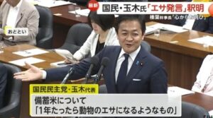 【国民民主党】玉木代表、動物の餌発言を釈明「『エサ米』の件は制度を説明しただけ」榛葉「発言を切り取られた!」