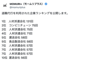 モームリプラスが退職代行を利用された企業ランキングを公開。上位10社に6社入っている業種も