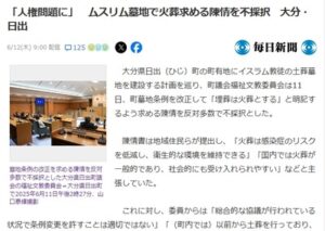 【速報】大分県日出町、ムスリム墓地で火葬求める陳情を不採択「差別や人権問題に発展していく」ムスリム協会『はい差別や人権侵害認定ね』