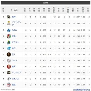 SB柳町達 .356(1位) 3本(21位タイ) 24打点(6位) OPS.943(1位) 転載元: https://nova.5ch.net/test/read.cgi/livegalileo/1749395553/ […]