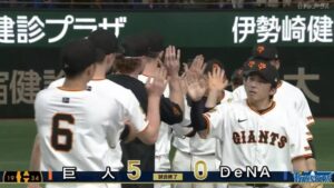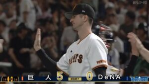 【巨人対DeNA9回戦】巨人が5-0でDeNAに勝利!2試合連続の完封勝利!グリフィンが開幕5連勝!丸の先制二塁打にオコエが3点適時三塁打で続く!DeNAは3連敗