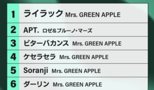 【悲報】日本のストリーミングランキング、Mrs. GREEN APPLE地獄wwwwww