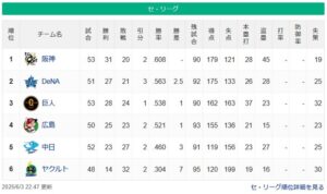 阪神タイガース、貯金11wwwwwwwwwwwwwwwwwwww