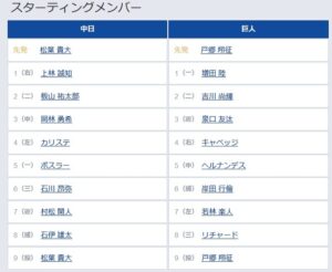 【中日対巨人11回戦】1(一) 増田 陸 5(中) ヘルナンデス 8(三) リチャード
