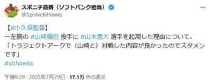 小久保監督、左腕の山崎福也に山本恵大を起用した理由について「トラジェクトアークで(山崎と)対戦した内容が良かったのでスタメンです」 転載元: https://tanuki.5ch.net/test/read.cgi/li […]
