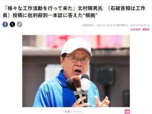 北村晴男弁護士、一線を越える。メディアの質問状に回答「石破は日民党(原文ママ)に潜入した工作員」 1:ベクルックス(茸) [ニダ]:2025/07/29(火) 11:33:24.00 ID:tb5nFSFo0 BE:2 […]